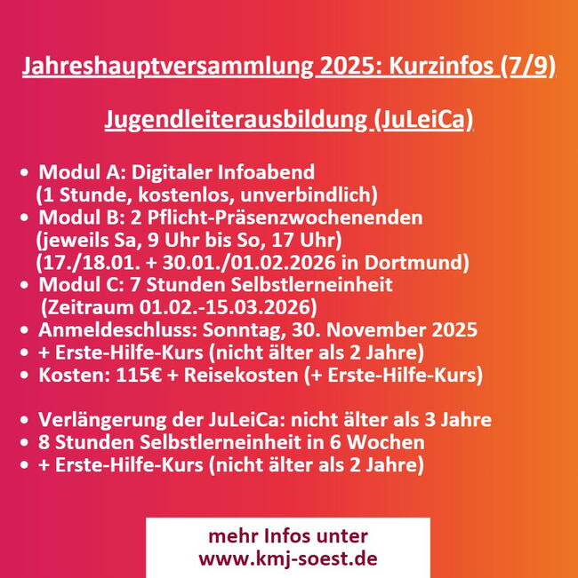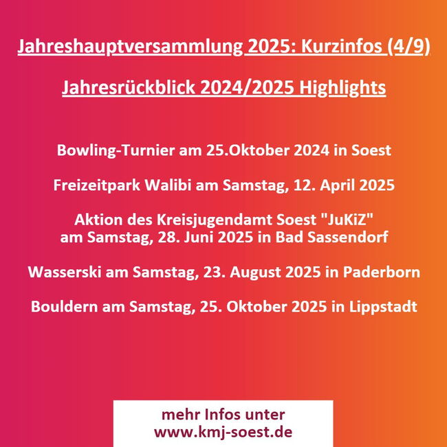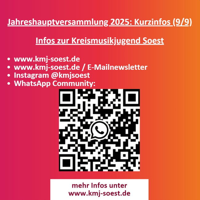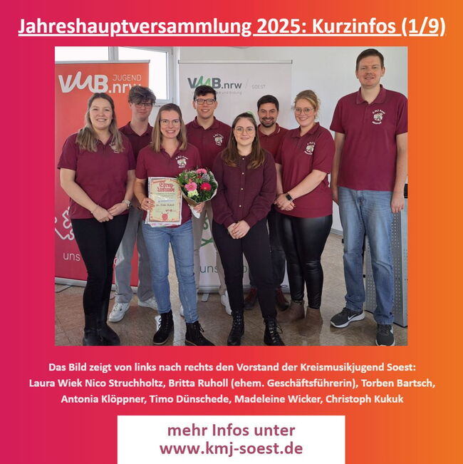 Kurz und Kompakt die wichtigsten Infos aus der Jahreshauptversammlung 2025 der Kreismusikjugend Soest: