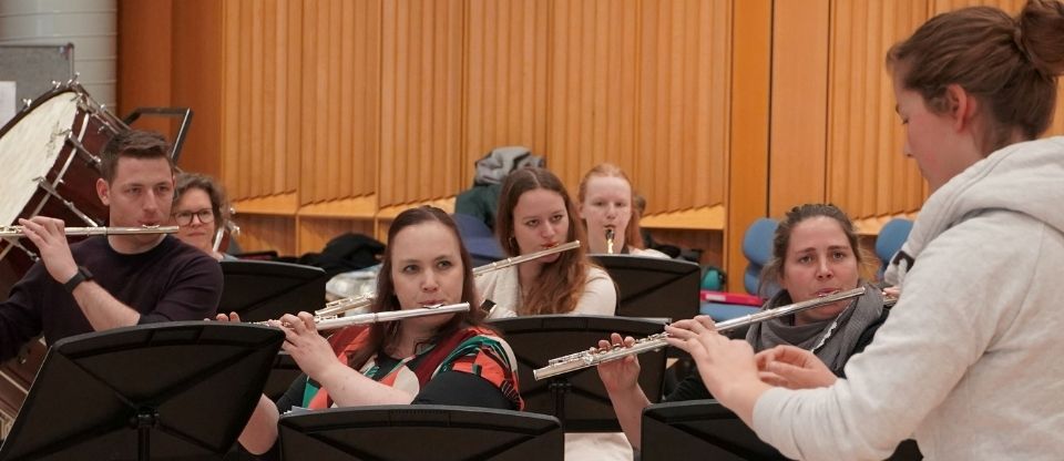 Neben methodisch-didaktischen Grundlagen geht es auch um praktische Dirigiertechnik und die Fähigkeit, Registerproben anzuleiten. Ergänzt wird das Programm durch Musiktheorie und Gehörbildung, Instrumentenkunde und Musikgeschichte – stets mit direktem Bezug zur Vereins- und Spielpraxis. Auch der eigene Instrumentalunterricht spielt eine wichtige Rolle, damit die Teilnehmenden ihre Spielfähigkeit festigen und als Grundlage für die pädagogische Arbeit nutzen können. In einem geschützten Rahmen sammeln sie erste Erfahrungen in der Nachwuchsarbeit und werden praxisnah auf ihre zukünftigen Aufgaben vorbereitet.