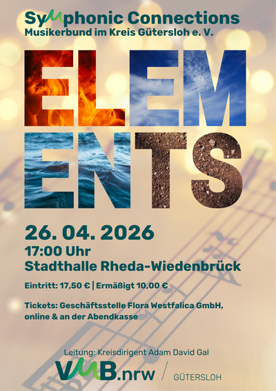 Am 24.01.2026 trafen sich etwa 50 Musikerinnen und Musiker in Rheda-Wiedenbrück, um zusammen mit dem Kreisdirigenten Adam David Gal ein spannendes Konzertprogramm unter dem Motto „Elements“ an 4 Probentagen vorzubereiten.